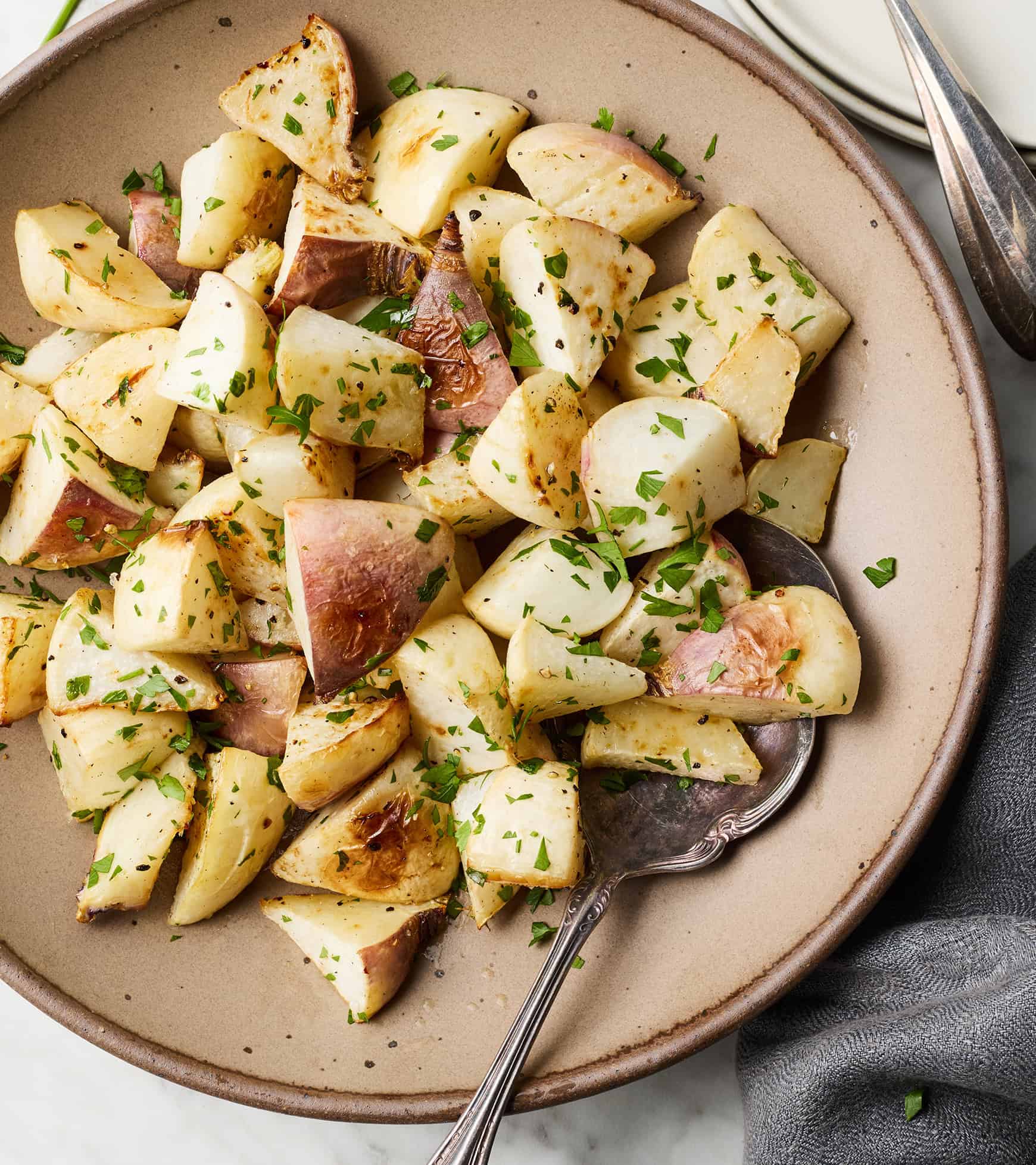 Roast for 20 to 35 minutes, or until tender and browned around the edges. The exact timing will depend on the variety and freshness. Season to taste, garnish with parsley, if using, and serve.