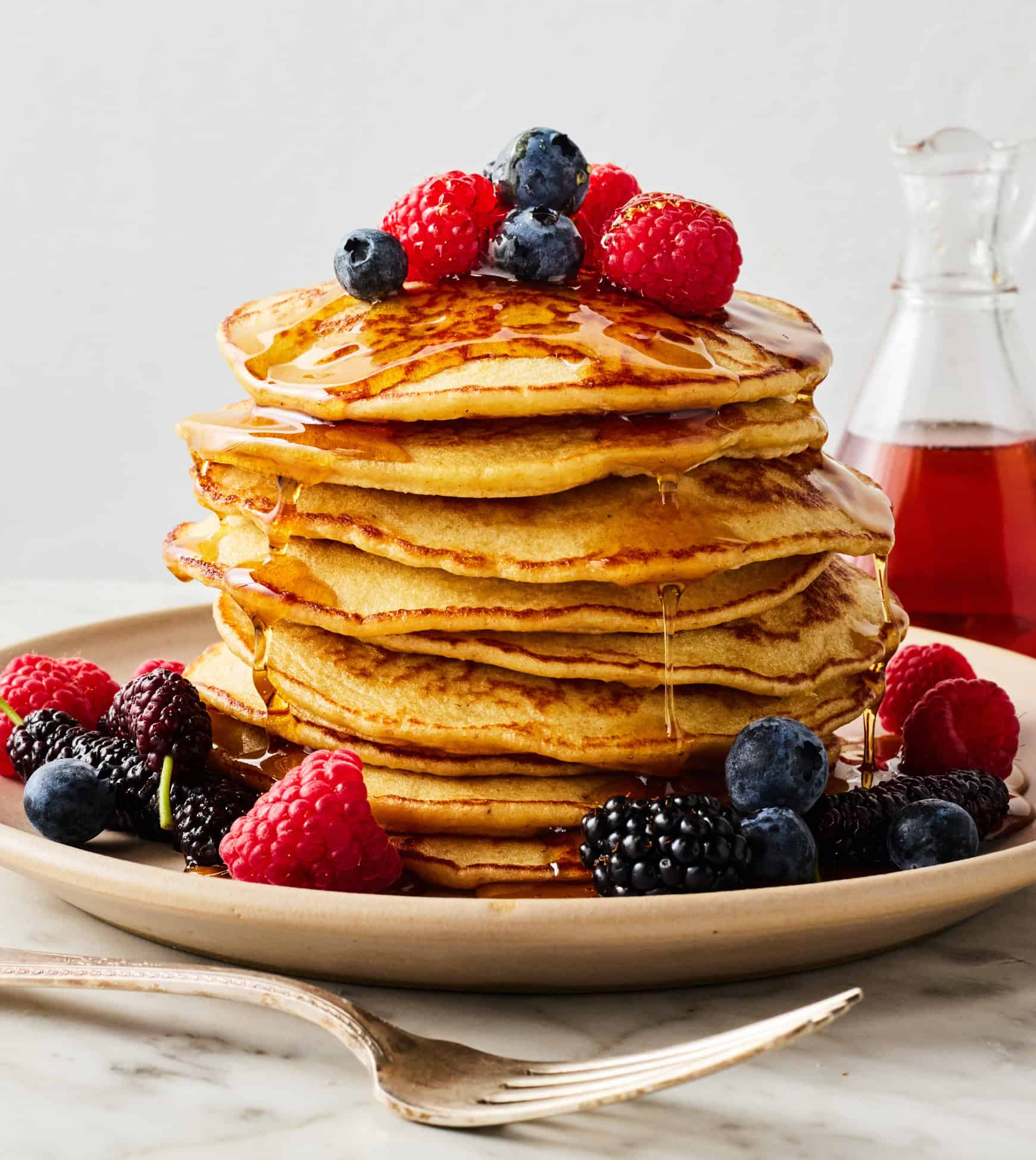 - Maple syrup – I add a little to the batter for sweetness and serve the pancakes with more on top.