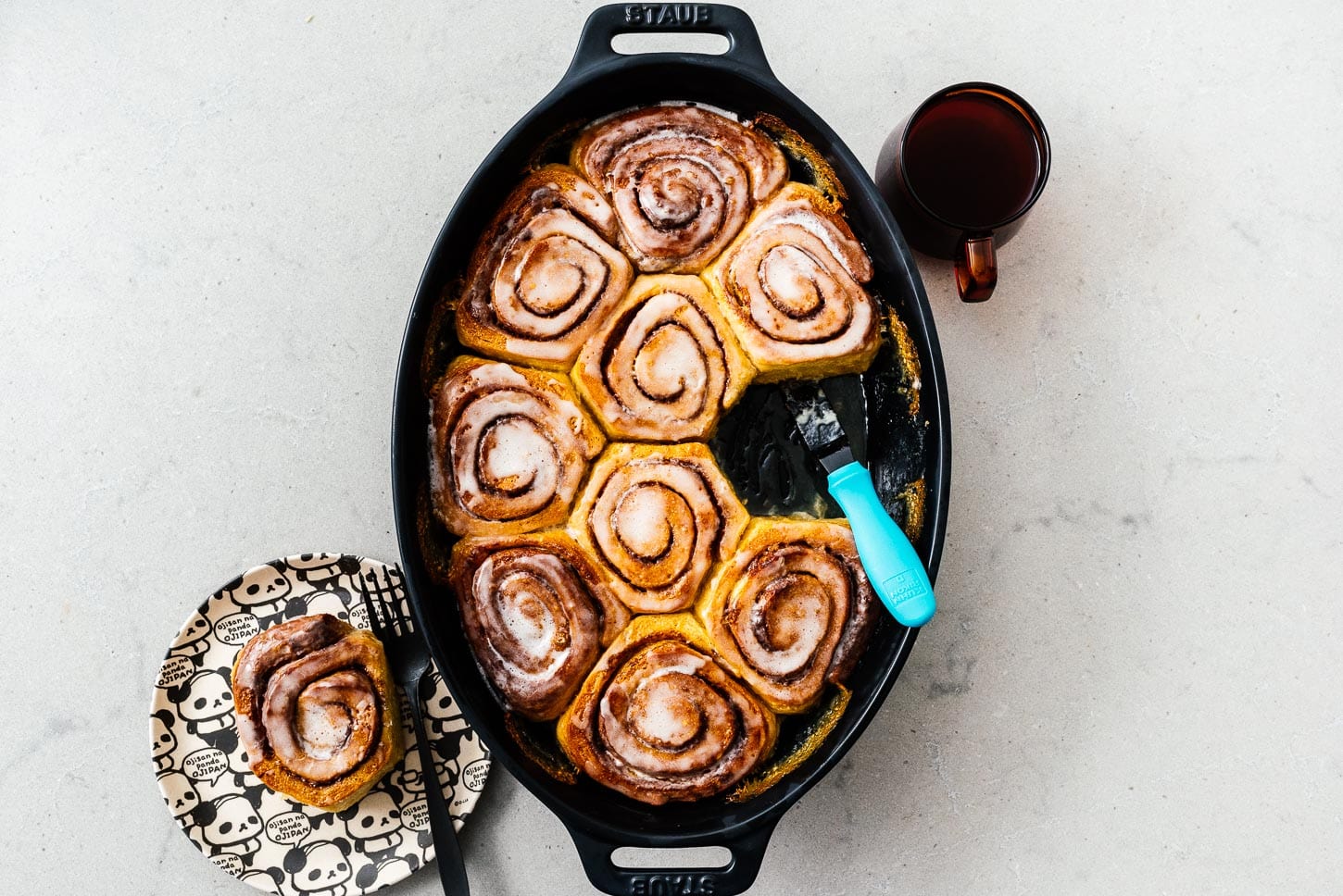 - Add the cinnamon rolls, spaced apart so they can rise and bake up fluffy.